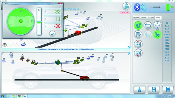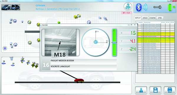 Le système de mesure électronique 3D Celette Naja est le système le plus pointu du marché. C’est aussi le seul système qui utilise les mesures directement du constructeur et pas d’un véhicule. Pour cette raison, Celette est le seul fournisseur qui peut garantir les meilleures données de mesure. Il existe une équipe spécifique chez Celette qui suit toutes les modifications des constructeurs. Tout ceci a résulté dans le choix du Contrôle Technique en Belgique d’utiliser le système NAJA pour leurs “contrôles après accident”. Celette est la référence au niveau du redressage. La nouvelle Naja Evolution utilise la dernière version Bluetooth pour la liaison avec l’ordinateur, donc pas de câbles. Ca donne un système agréable et facile à utiliser. Naja peut être installé sur chaque marbre pour assister pendant une réparation, ou sur un support mobile “Gazelle” pour des mesures diagnostiques.