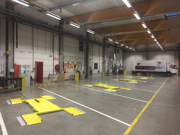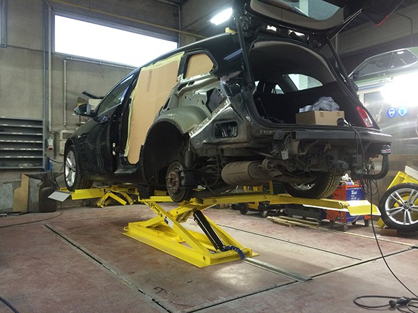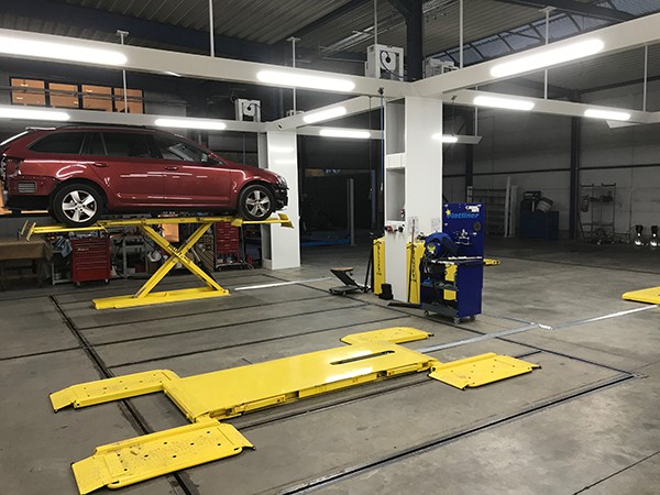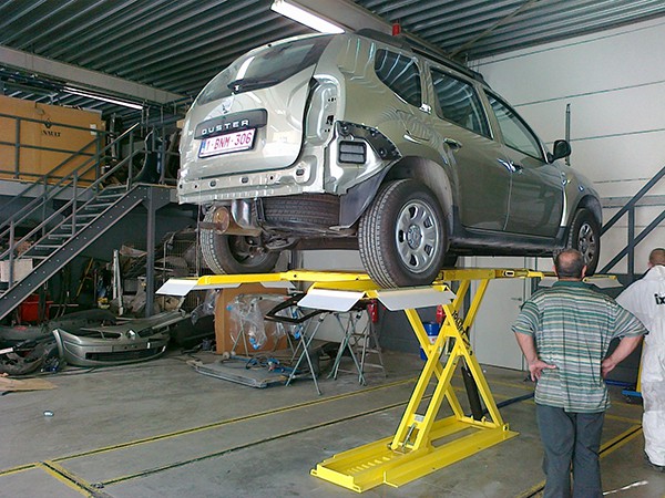 Sur les coins du pont on a prévu des points d’attache pour le montage des plateaux. Avec ces plateaux on peut lever des véhicules jusqu’à 3500 kg sur les roues, dont le bas de caisse est libre.