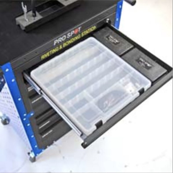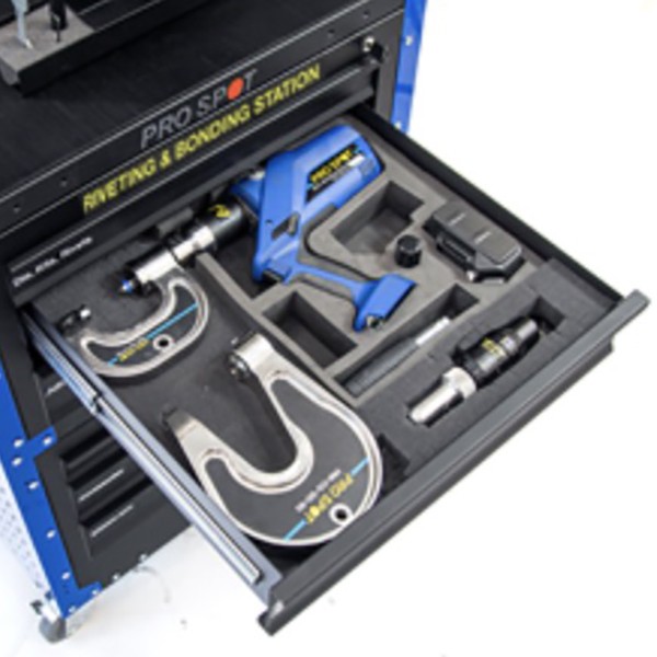 Le système de rivetage multifonction PR-5 combine plusieurs applications de rivets en une seule unité polyvalente. Les matrices magnétiques maintiennent les rivets en place, ce qui rend l’opération rapide et facile. Les bras et les adaptateurs se connectent rapidement pour changer efficacement les opérations. Les fonctionnalités SMART incluent un déclencheur stop-and-go pour la précision, le contrôle de la force et plus. Avec une batterie chargée on arrive à mettre 350 rivets. Cette station de rivetage comprend toutes les pièces de la version Pro, y compris le bras moyenne et l’adaptateur de rivet unilatéral (rivets aveugles). Tout cela dans un chariot de rangement pratique où tout a sa place spécifique. En outre, la station dispose également d’un support pour vos pinces à rivets et d’une tablette pour les instructions.