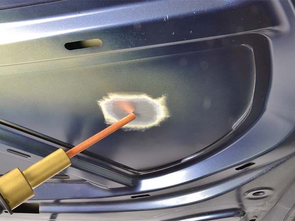 Bij grote deuken kan het gerokken materiaal een probleem zijn. In principe heeft de plastische vervorming tijdens de impact ervoor gezorgd dat de materiaal gerokken werd. De enige manier om dit op te lossen, is door het metaal te krimpen. Hiervoor wordt de lak aan de onderzijde afgeschuurd. Het krimpen gebeurt van achteren en moet meerdere keren worden herhaald, afhankelijk van de grootte van de schade.