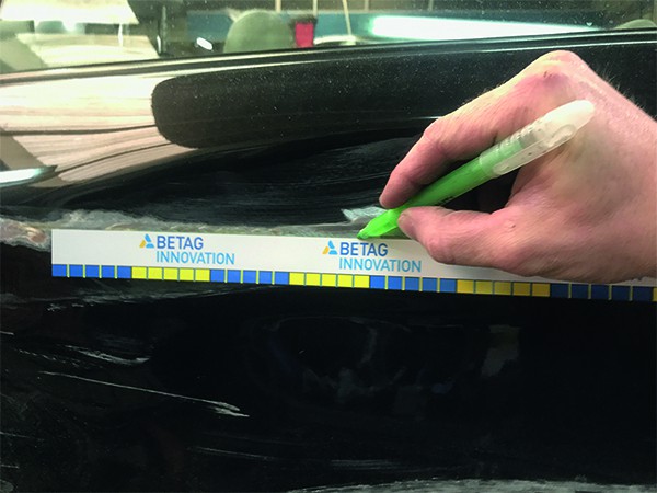 De Magnetic Flatline is ideaal voor het markeren van een karakterlijn alvorens de bits te lassen.Door zijn flexibiliteit kan de Flatline zichaanpassen aan de vorm van de deuk.