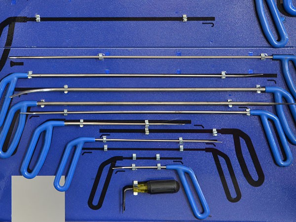 De PDR wagen is een innovatief en handig werkstation die 3 belangrijke gereedschappen combineert: BEA SPS set, Qset 25 Pro en de GluePuller GP2. Het is absoluut onmisbaar voor elke ambitieuze werkplaats die zijn efficiëntie wil vergroten. Elke set: BEA, Qset 25 pro en GluePuller hebben hun specifieke plaats voor een beter overzicht. De wandpanelen van de wagen zijn voorzien van een visuele weergave van ieder gereedschap. De 4 geïntegreerde stopcontacten, zorgen ervoor dat u met een minimum van kabels op de grond kan werken.