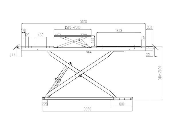 Dubbele schaarhefbrug 2,2 m - 5,0T - inbouw