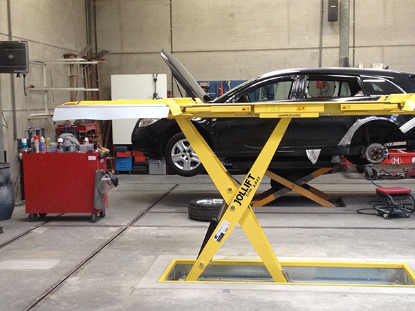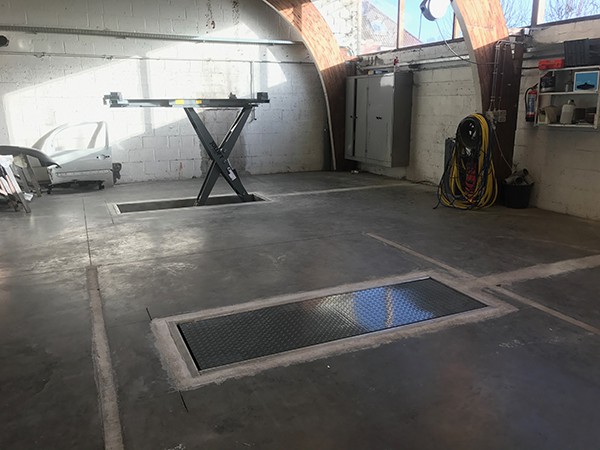 De basisplaat is dermate stevig opgemaakt met U-profils van 10 mm dikte, waardoor de brug zonder probleem in een voorbereidingszone kan worden ingezet. De schaar-armen zijn geconstrueerd uit massief staal van 20 x 150 mm (bxh) en worden bediend door een hydraulische piston. De brug is in gesloten toestand volledig verzonken in de vloer.