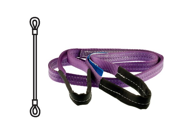 Hijsband met 2 versterkte lussen, deze dragen direct in het hijsoog (type D-sluiting, niet meegeleverd)